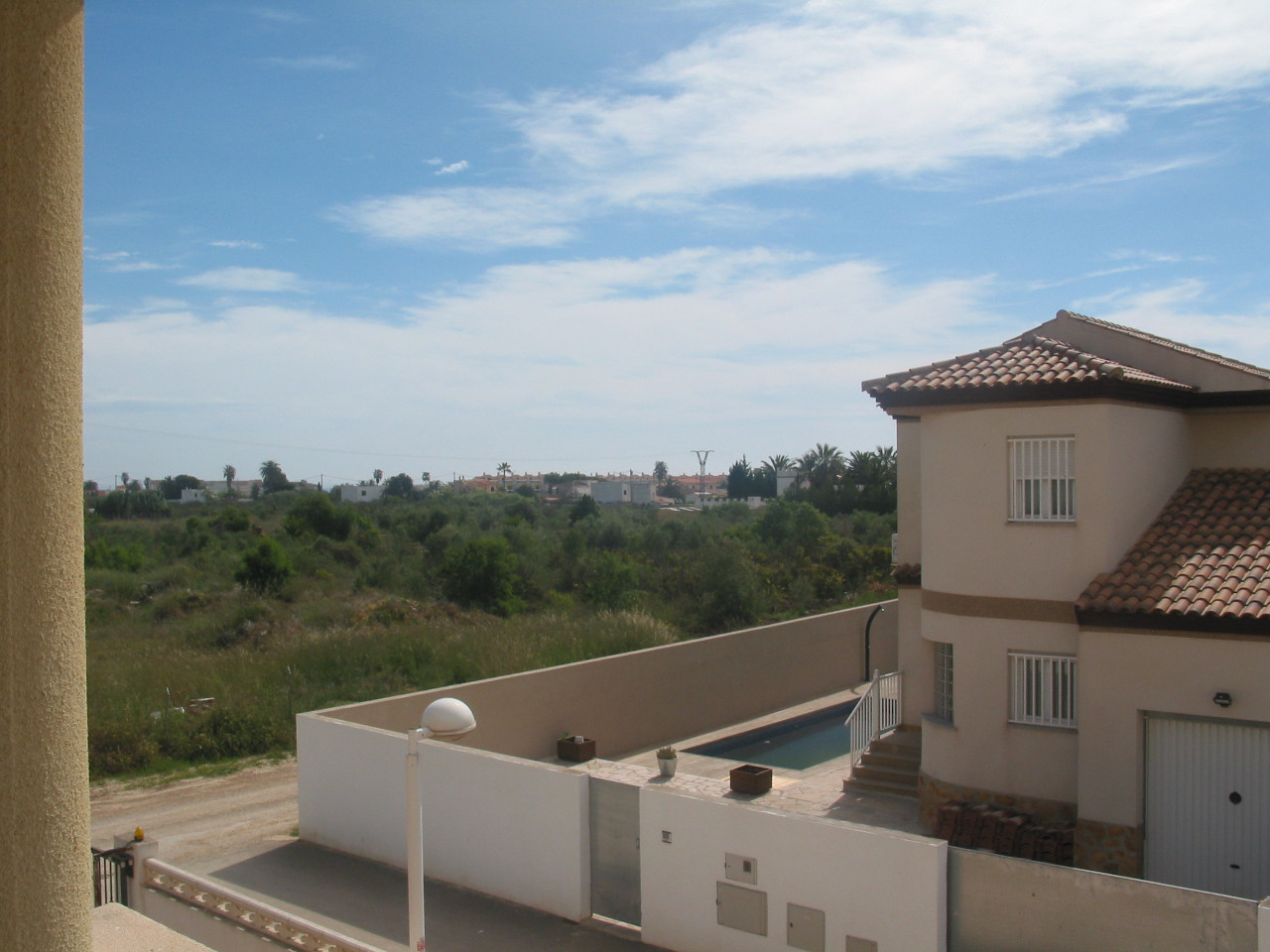Casa adosada de 90 m2 y 200 m2 de terreno. En muy buen estado. Dispone de 3 habitaciones, 1 baño, 1 aseo, patio trasero, terreno en la parte delantera para dos coches, aire acondicionado, calefacción. Calle privada y piscina comunitaria.